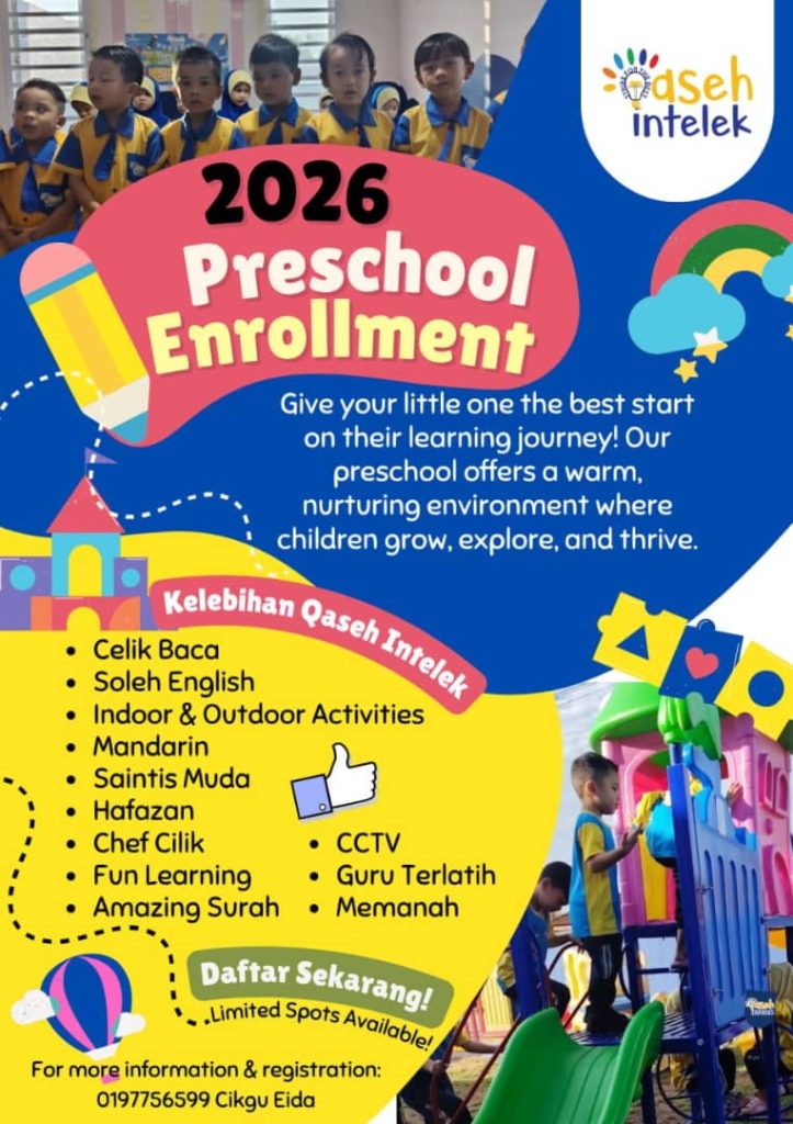 Qaseh Intelek Sdn Bhd merupakan pusat pendidikan awal kanak-kanak yang berdedikasi untuk menyediakan pengalaman pembelajaran menyeronokkan dan berkualiti kepada anak-anak berumur 3 hingga 6 tahun. Kami menekankan keseimbangan antara aspek akademik, sahsiah dan emosi supaya anak-anak membesar dengan keyakinan diri dan nilai-nilai murni.